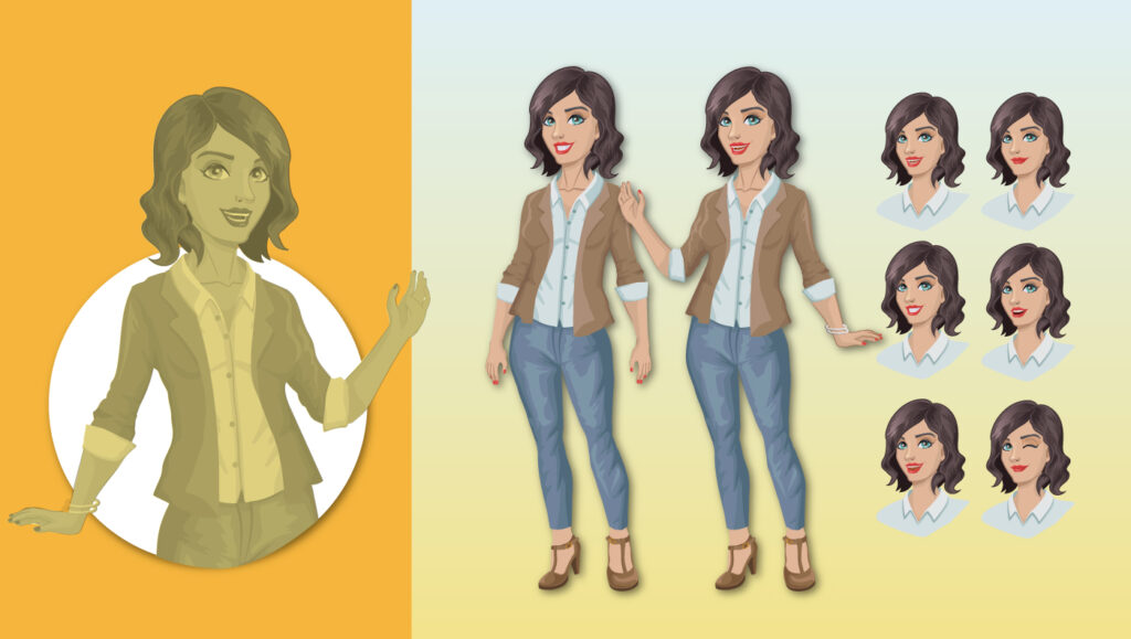 Por ello, luego de algunas pruebas, se optó por dar a los personajes sin perder su naturaleza ilustrativa, un toque un poco menos caricaturesco. Así pues, se llegó al resultado final que se muestra a continuación.